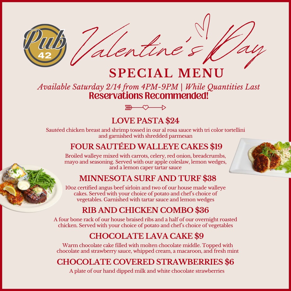 Make your Valentine's RESERVATION at Pub 42 now!